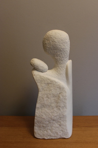 2022Beeld uit wit marmer in simpele vormen vol uitstraling van moederliefde.